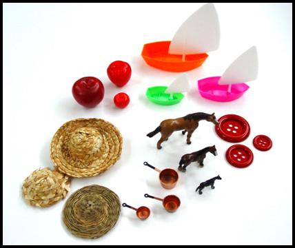الأطفال ( قوارب ، تفاحات ، أزارير ، أواني ، أحصنة ،