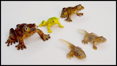 الضفادع مختلفة الأحجام ( خمسة أحجام مختلفة ) .