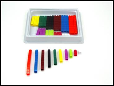الأبيض 1سم ، القضيب الأحمر 2سم ، القضيب الأخضر الفاتح 3