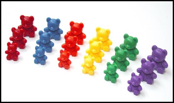 مجموعة مجسمة من الدببة مختلفة الألوان ، (أحمر - أصفر - أزرق - أخضر - بنفسجي - برتقالي ) ،