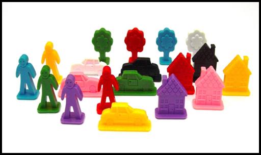 بلاستيكية مختلفة الأشكال ( سيارات ، أشجار ، منازل ،
