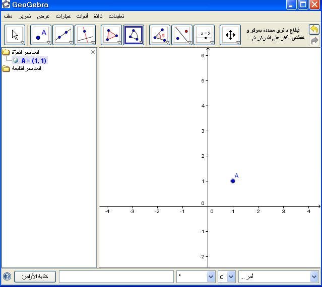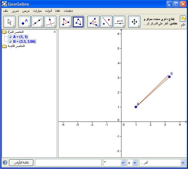 4. ثم يحدد نقطة نهاية القطاع الدائري كما في الشكل التالي :