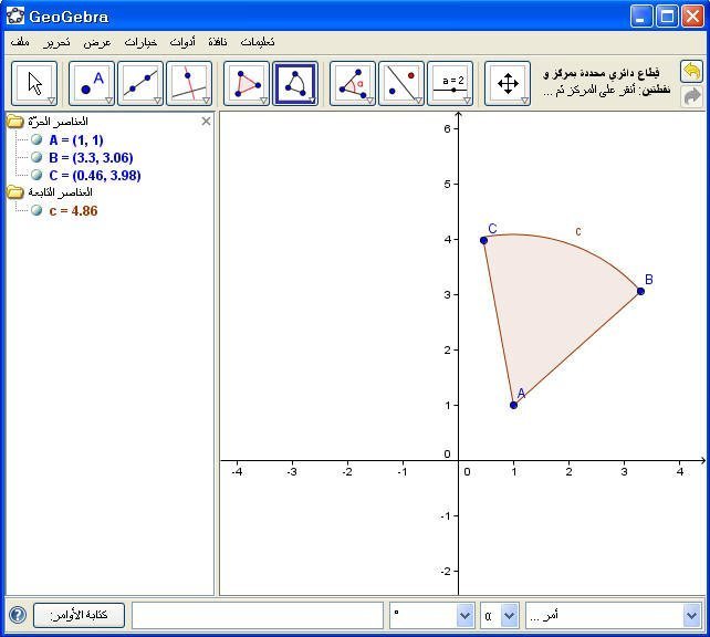 تستخدم هذه الأيقونة لتمثيل قطاع دائري محدد بمركز ونقطتين .
