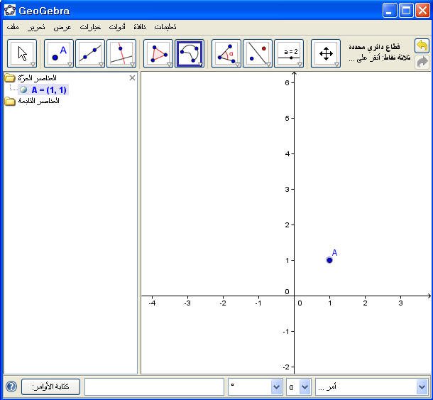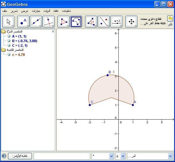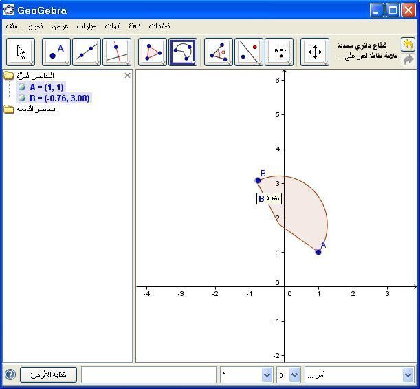 3. اختيار النقطة الثانية التي يمر منها قوس القطاع الدائري كما في الشكل :