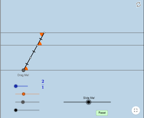 قم بتحريك نقطة المستقيم الأيمن وغير في طوله، ماذا تلاحظ؟