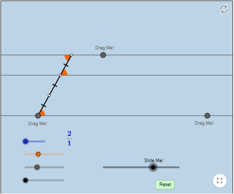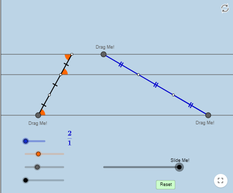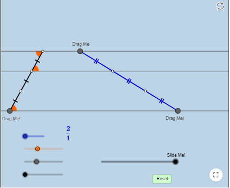 كرر النشاط وقم بتغيير حجم المستقيمات وتحقق من نظرية تناسب المستقيمات المتوازية من خلال