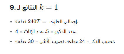 • نصيب الذكور: ٤٨ ÷ ٢ = ٢٤ قطعة