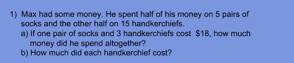 من المعطيات نصف المال على الجوارب والنصف الآخر على المناديل