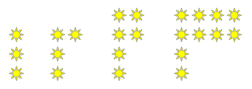 The number of objects listed under each pattern is for step 43 in that sequence.