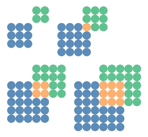 The number of objects listed under each pattern is for step 43 in that sequence.