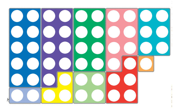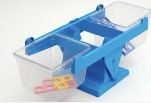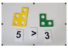 يتم اعطاء الطالب قطعتين ويقارن بينهما من حيث عدد الدوائر التي يتكون منها كل شكل ( اكبر من او أصغر من أو يساوي )