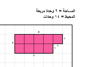 مساحة ومحيط مربع 3 في 3 مربع 4 في 4 مربع 5 في 5 مستطيل 2 في 3