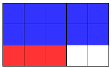 ضرب عددين كسريين : تكمن الفكرة في تمثيل الوحدة بمستطيل بعده الأول مقام الكسر الأول وبعده الثاني مقام الكسر الثاني والاستفادة