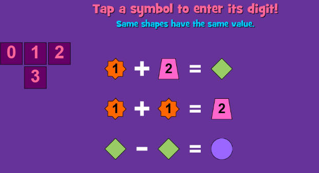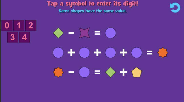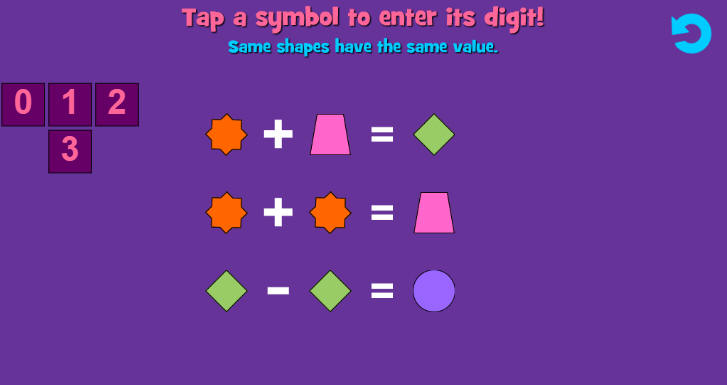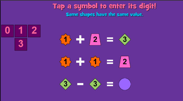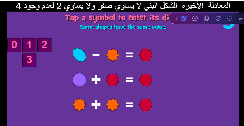 الهدف تحديد قيمة لكل شكل من القيم الموجودة في الركن الأيسر العلوي من الشاشة