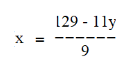 لكي يكون x عددًا صحيحًا، يجب أن يكون 129 - 11y من مضاعفات 9.