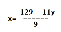لكي يكون x عددًا صحيحًا، يجب أن يكون 129 - 11y من مضاعفات 9