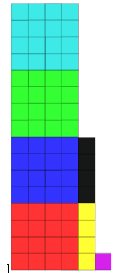 كما ان قلب كل شكل هو المستطيل المبني فوق المربعات السفلية