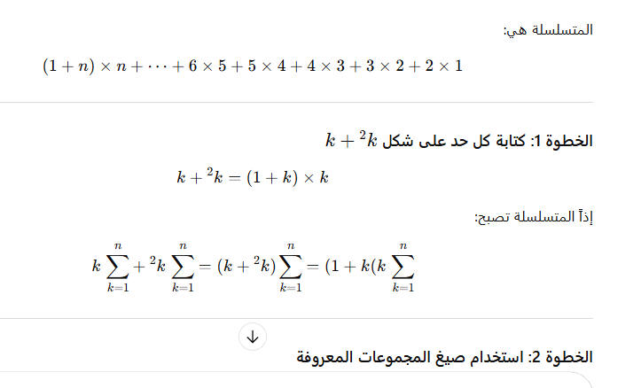 وحيث ان الشكل مكرر ن مرة فيكون المجموع تكرار المجموع السابق ن مرة